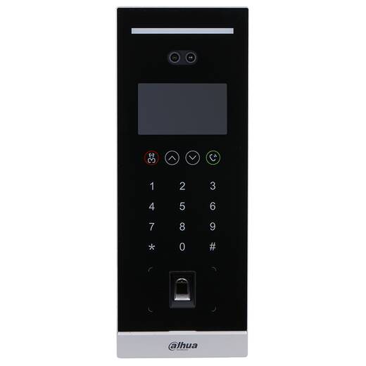 DHI-VTO6541H-S2 – вызывная панель c распознаванием лиц, отпечатков пальцев и сенсорной клавиатурой. В устройстве применяется алгоритм распознавания лиц глубокого обучения.