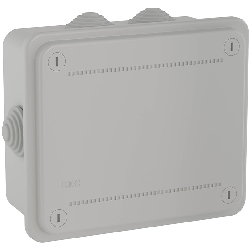 DKC 53900 – ответвительная пластиковая коробка с кабельными вводами. Применяется для защиты и эстетичного оформления мест соединения кабелей (информационных, осветительных, силовых). Обеспечивает быстрый монтаж и доступ к кабелю при необходимости.