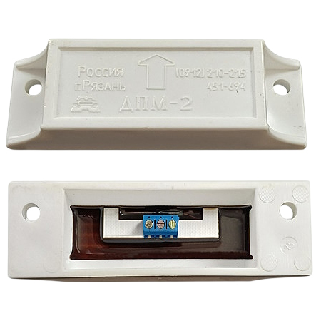 ДПМ-2 исп.03 – датчик положения магнитогерконовый, предназначен для блокировки ворот, железнодорожных контейнеров, ангаров, дверей вагонов, лифтов и других конструктивных элементов зданий и сооружений из магнитопроводных материалов (сталь, чугун, оцинкованное железо и т.д.) и немагнитопроводных материалов, на открывание или смещение с выдачей сигнала путем размыкания (переключения) сухого контакта геркона, а также в системах автоматики различных устройств.