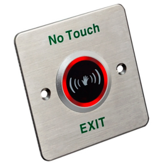 DS-K7P03/T – бесконтактная кнопка выхода с LED-индикатором статуса, отображающим ожидание/рабочий режим (зеленый/красный).