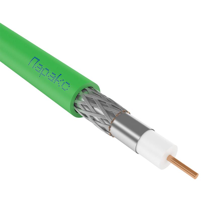РК 75-3,7-319нг(А)-LSLTx – радиочастотный кабель (RG-59) с волновым сопротивлением 75 Ом имеет изоляцию из пленко-пористого полиэтилена (физическое вспенивание), комбинированный экран (оплетка медными лужеными проволоками плотностью не менее 60% поверх алюмополимерной ленты) и оболочку из низкотоксичного ПВХ пластиката пониженной пожарной опасности с низким дымо- и газоведением зеленого цвета.