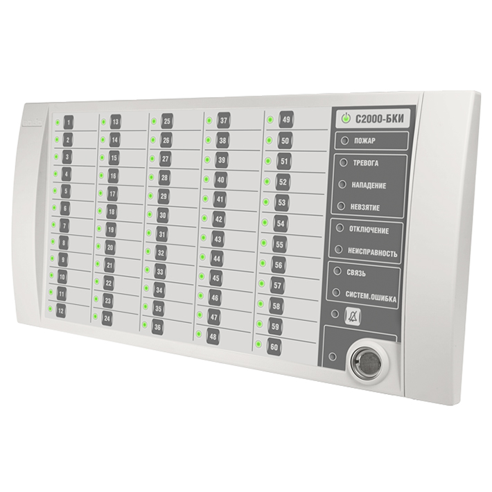 - раздельное отображение на 60 двухцветных индикаторах состояний контролируемых разделов;