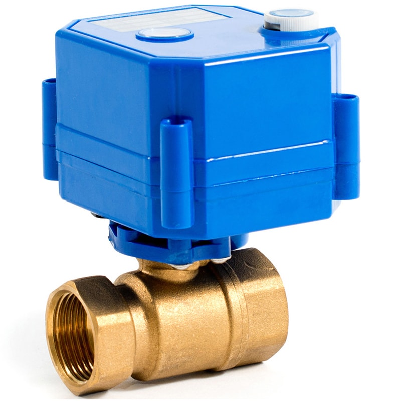 Шаровой кран 3/4" с электроприводом из латуни оснащен металлическими шестернями. Привод небольшой, но демонстрирует отличительные показатели мощности.