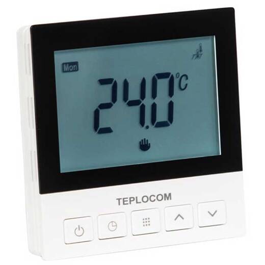 TEPLOCOM TSF-Prog-220/16A – встраиваемый программируемый термостат для электрического теплого пола, предназначен для автоматического поддержания температуры пола в кабельных нагревательных системах по заранее заданному расписанию.