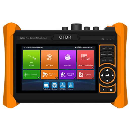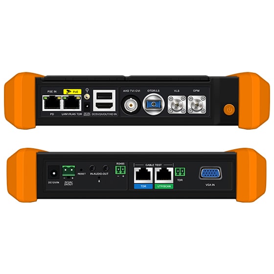 Управление видеотестером может производится как с помощью кнопок, расположенных на корпусе, так и с помощью емкостного экрана Touch Screen через дружественный интерфейс. В данном тестере, помимо мощных инструментов для работы с камерами всех форматов, присутсвуют также инструменты для работы с оптическими линиями, а именно: OTDR (оптический рефлектометр временной области) с лазером 1310/1550 нм и динамическим диапазоном 28/26 дБ, измеритель оптической мощности и визуальный дефектоскоп.