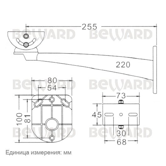MBF250A – металлический кронштейн для настенного крепления камер, 285мм, допустимая нагрузка до 2кг.