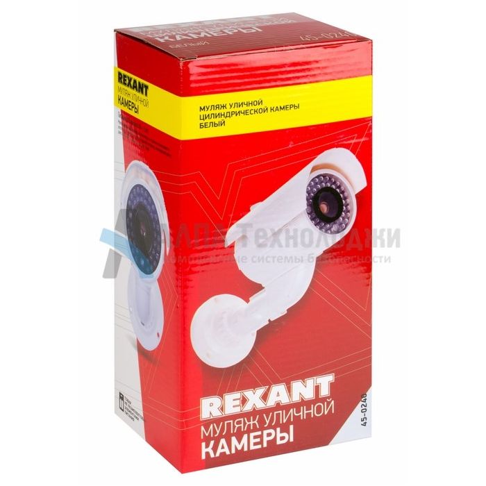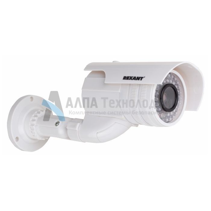Rexant 45-0240 – уличный муляж камеры видеонаблюдения, цилиндрический белого цвета с мигающим красным светодиодом.