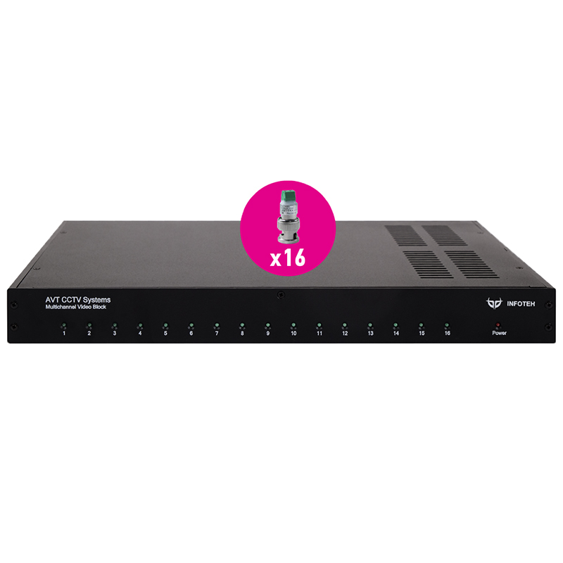 AVT-Mega Active S – 16-ти канальный комплект для передачи AHD/CVI/TVI 5Mp/4Mp/1080p видеосигналов по витой паре.