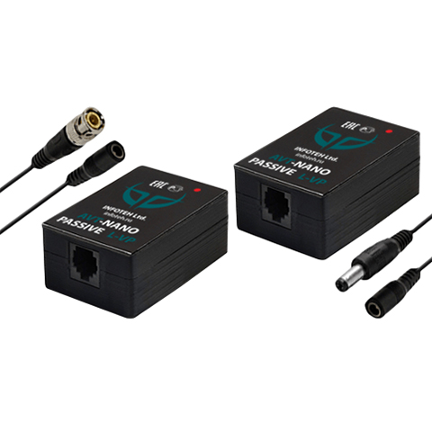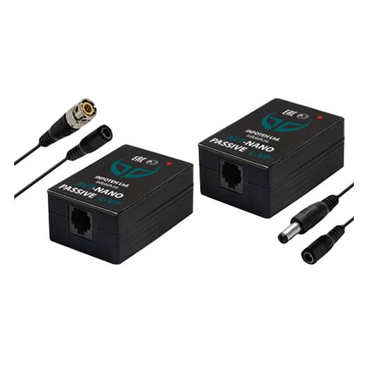 AVT-Nano Passive L-VP – пассивный комплект для передачи AHD/CVI/TVI и питания по кабелю витая пара до 450 метров.