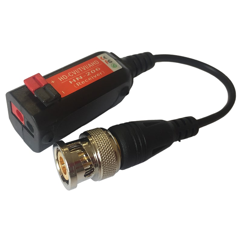 HN-206 – универсальный пассивный приемопередатчик видеосигнала, имеющий BNC/клеммное исполнение и передающий сигнал с разрешением 1080p формата AHD по витой паре 5-й категории на расстояние до 320 метров. Кабель фиксируется с помощью самозажимных клемм.