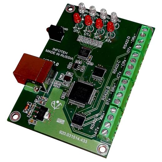 AVT-USB/4RS422 – промышленный 4-портовый преобразователь интepфeйcов USB в RS422.