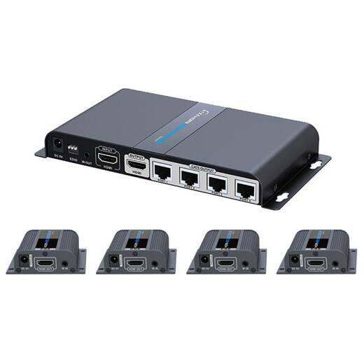LKV714PRO – HDMI разветвитель позволяет подключить к одному источнику HDMI четыре потребителя на расстоянии до 40 м по кабелю "витая пара" cat6.