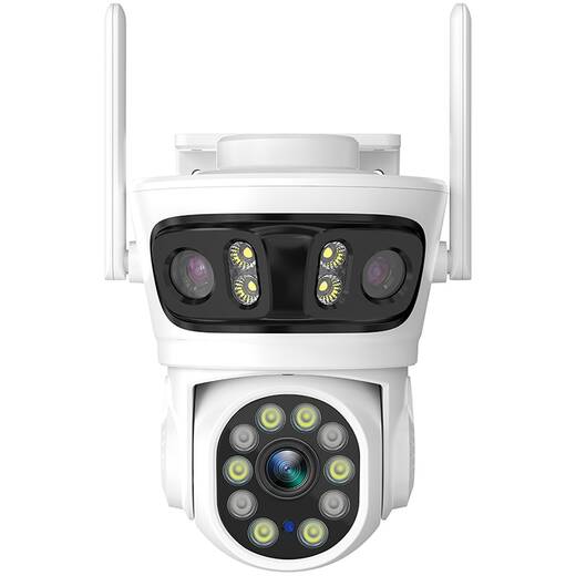 HN-S335T3 – поворотная IP камера, которую можно установить как внутри помещения, так и на улице. В одном корпусе находятся одновременно три камеры с разрешением по 3 мегапикселя каждая, две стационарные (направлены под разными углами), другая расположена на поворотном механизме (поворот 355 градусов, наклон 90 градусов). Суммарное разрешение трёх камер составляет 9 мегапикселей. Данная камера это полноценная система видеонаблюдения с поддержкой SD карты, облачного хранилища, детектором движения, динамиком и микрофоном, поворотом, функцией слежения за человеком. С помощью кронштейна из комплекта, камера может быть установлена на вертикальную поверхность. Для записи видео можно использовать SD карту или пользоваться доступным облачным хранилищем, тогда записанная информация будет храниться в полной безопасносности. Доступ к облачному хранилищу предоставляется через приложение O-Cam Pro, за использование облачного хранилища взымается плата. Управление камерой, просмотр записей, и видео в реальном времени может осуществляться через приложение для телефона или с ПК через специализированное программное обеспечение.